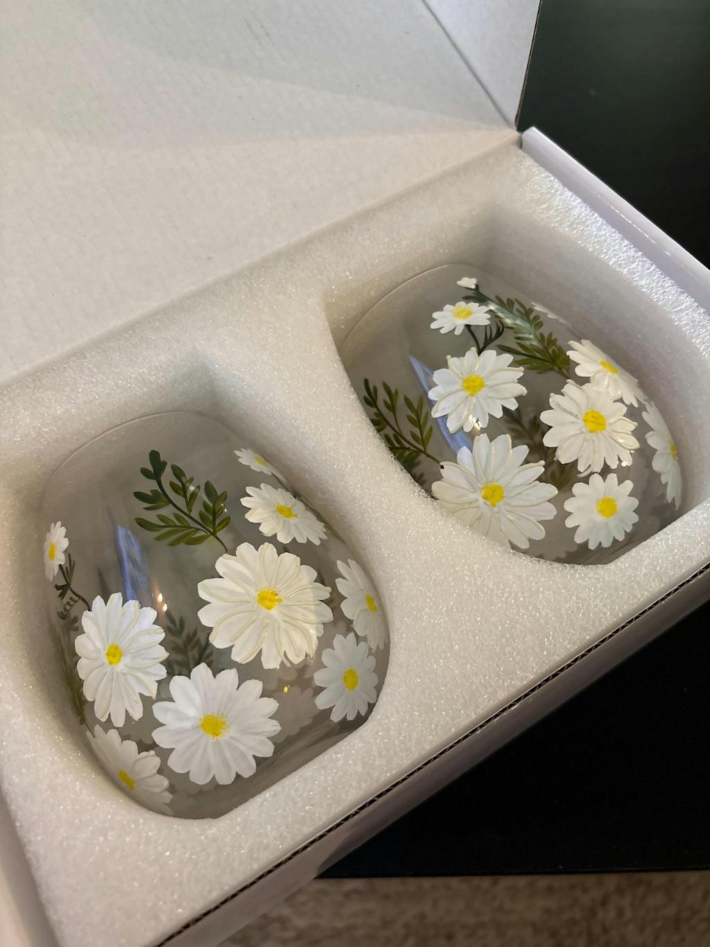 These stemless wineglasses were purchased as a 40th birthday gift and are absolutely stunning. Photos do not do them justice. Shipping was much faster than expected and the packaging was perfect.