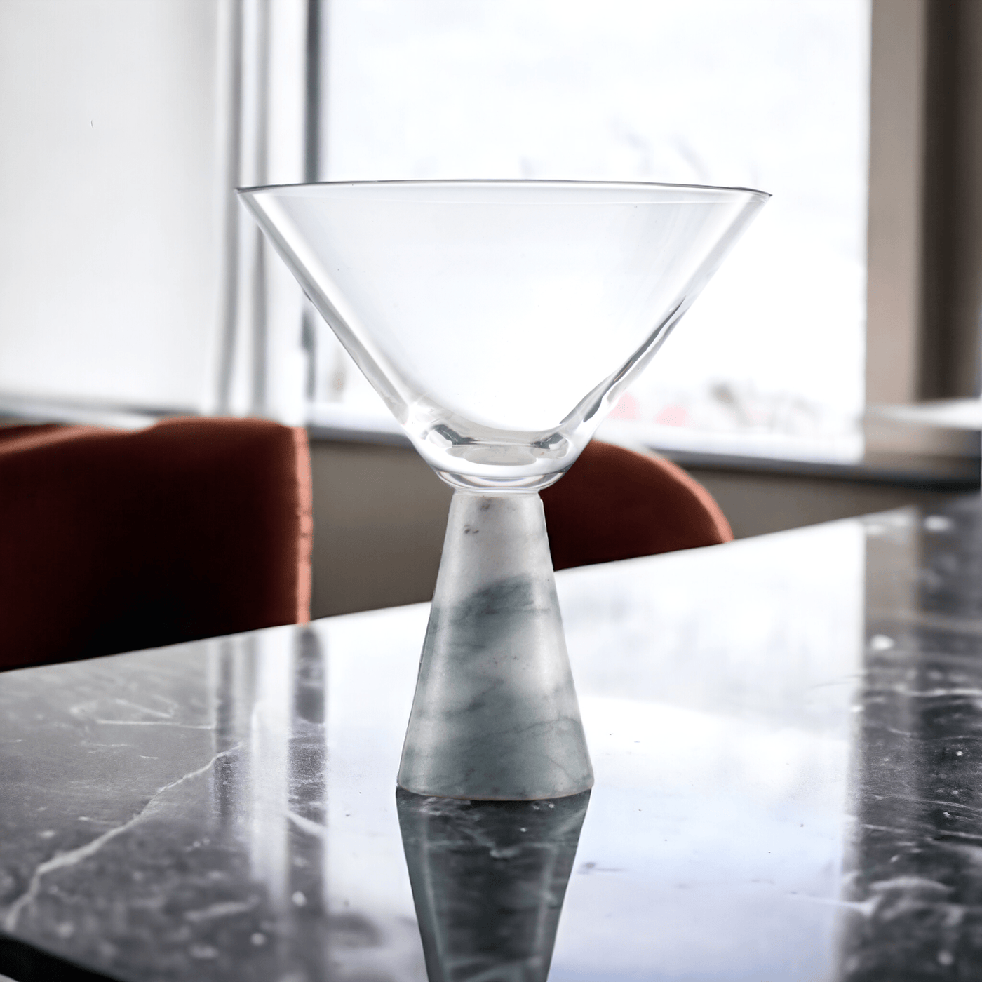 This luxurious martini glass set evoke a modern aesthetic in barware, created for both distinctive artistry and fun spirit! The vibe of this marble cocktail glass set is a mixture of classic and contemporary sleek. The V-shaped martini glass is a stunning visual atop the embellished glass sphere base. Artistic, striking and aesthetic, this martini glass can be used for home bars, commercial bars, restaurants, or even night clubs.